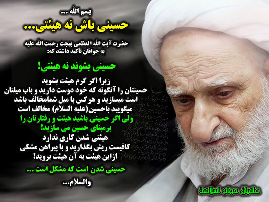 تکذیب جمله منتسب به آیت الله بهجت - حسینی باش نه هیئتی...
