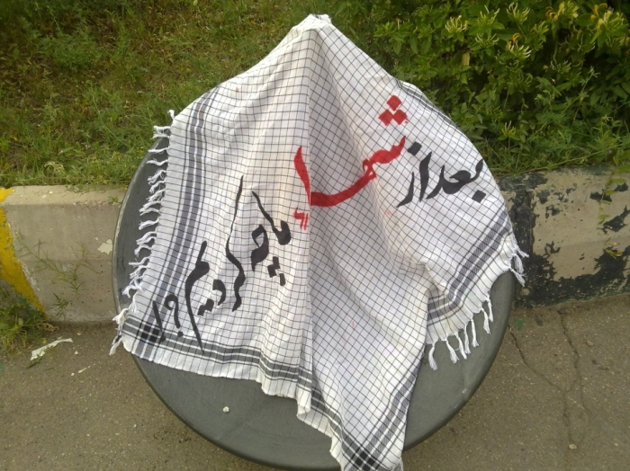 عبدالحسینی به یکی از پوسترهای ستادِ تبلیغاتی اشاره می کند و می گوید: