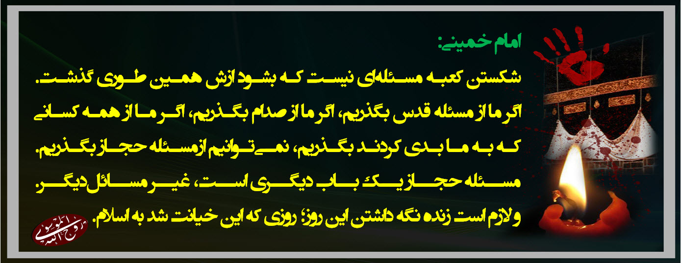 پیام استقامت و مظلومیت شما و زائران عزیزتر از جانمان را از کنار کعبه مظلوم و حرم خون آلود خدا شنیدم.